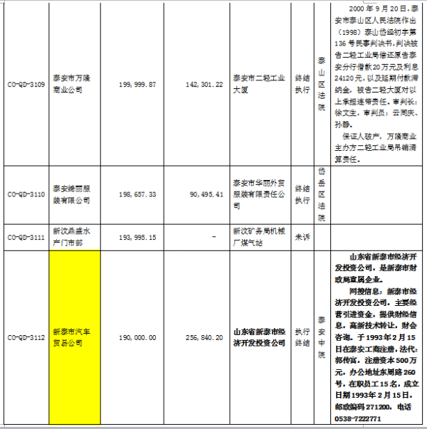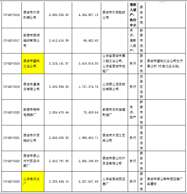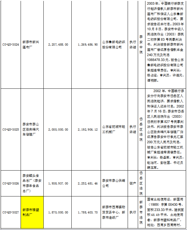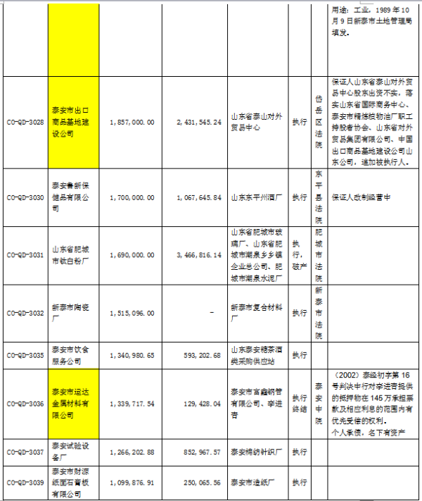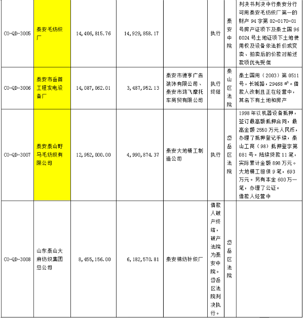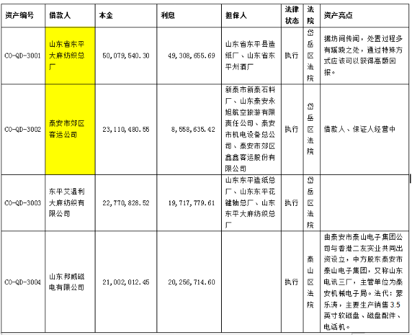 受委托,對以下泰安區(qū)域內(nèi)的153筆不良資產(chǎn)打包出售,合計本金2.9億元,利息2.2億元,本息合計5.1億元。處置價格2000萬元。有意者,請聯(lián)系我公司15653421107范經(jīng)理